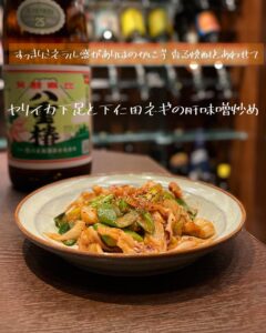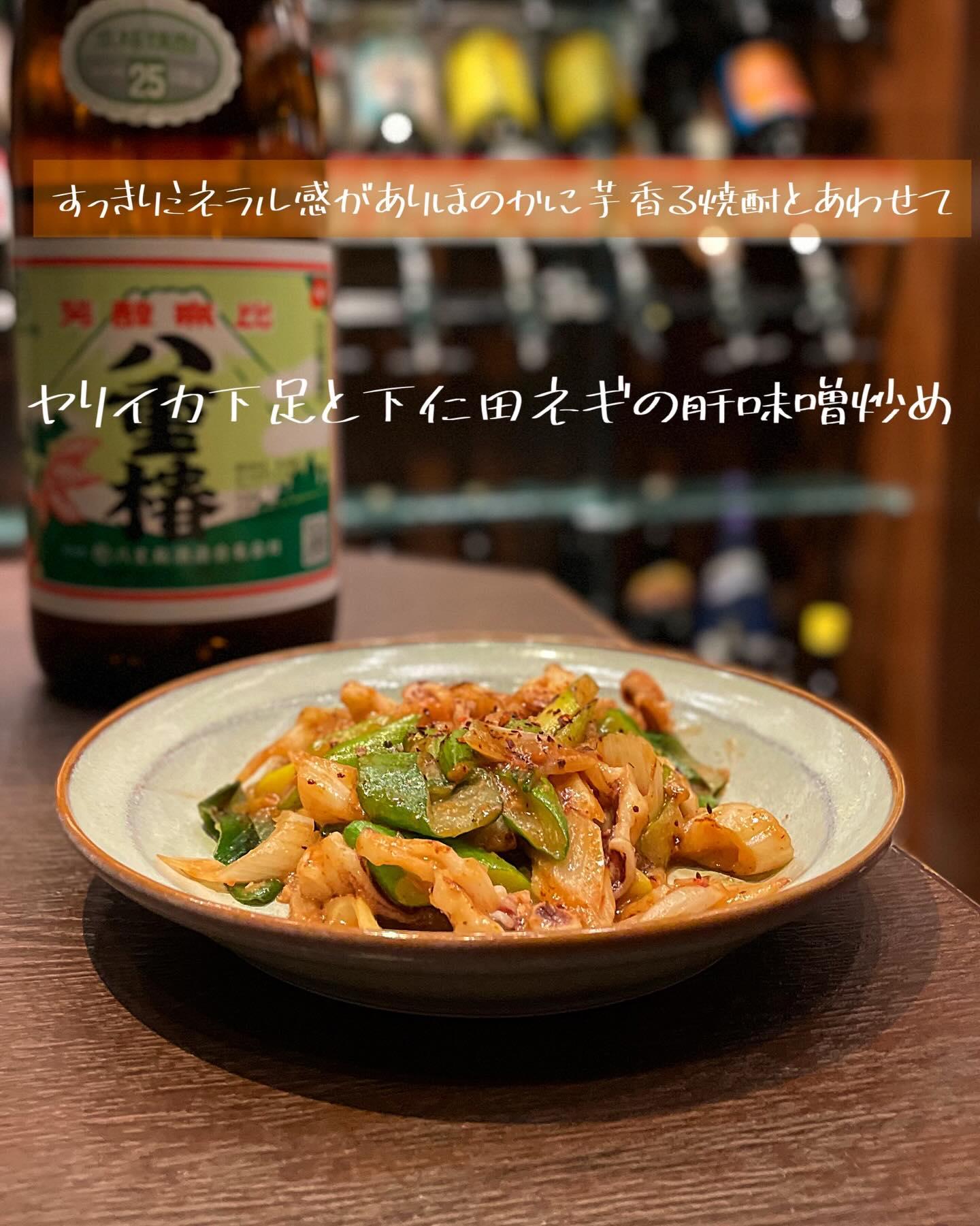 今が旬のヤリイカの下足と下仁田ネギをヤリイカ肝を使った特製味噌ダレで炒めて