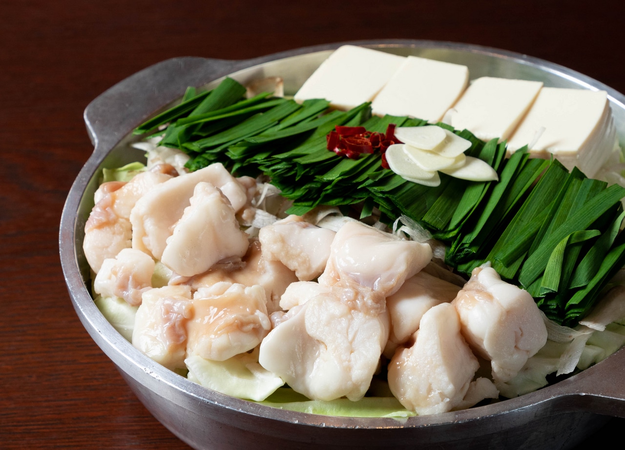 芋蔵の「もつ鍋」は国産牛ホルモンを使用しており、鮮度も抜群!旨みたっぷり・プルプル食感をお楽しみいただけます。味は醤油・塩・味噌の3種類からお選びください。