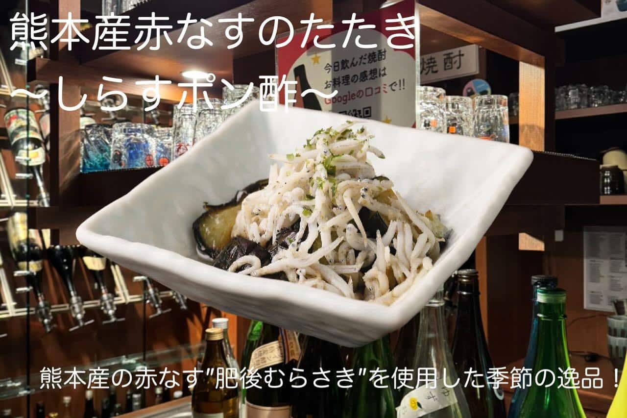 熊本産のブランドなすを使用した季節の逸品。シラスとポン酢の相性抜群!