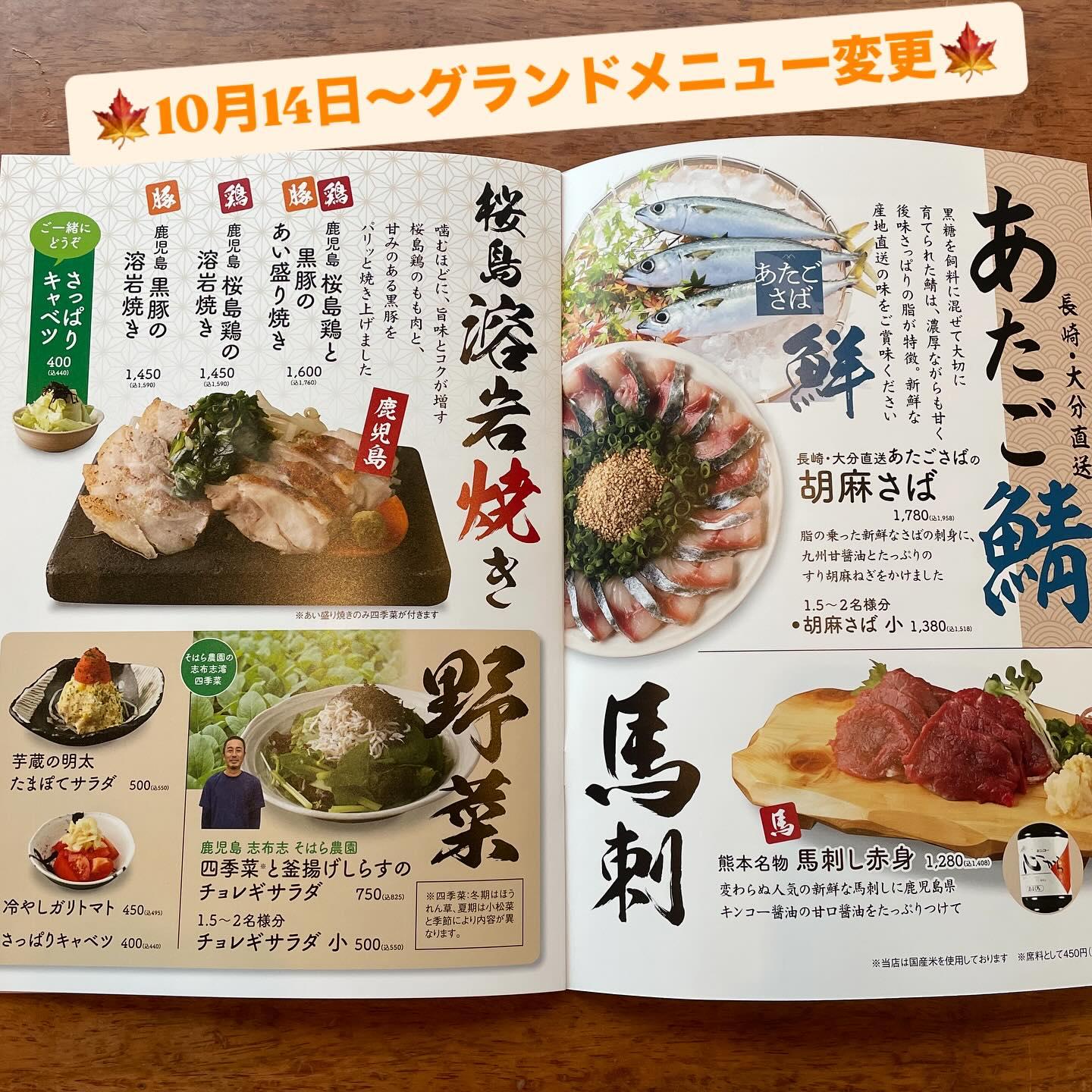 10月14日からグランドメニュー変更‼️ 《居酒屋/九州料理/忘年会/新年会/歓迎会/送別会/個室/もつ鍋/餃子/馬刺/芋蔵/桜木町/馬車道/焼酎/飲み放題》