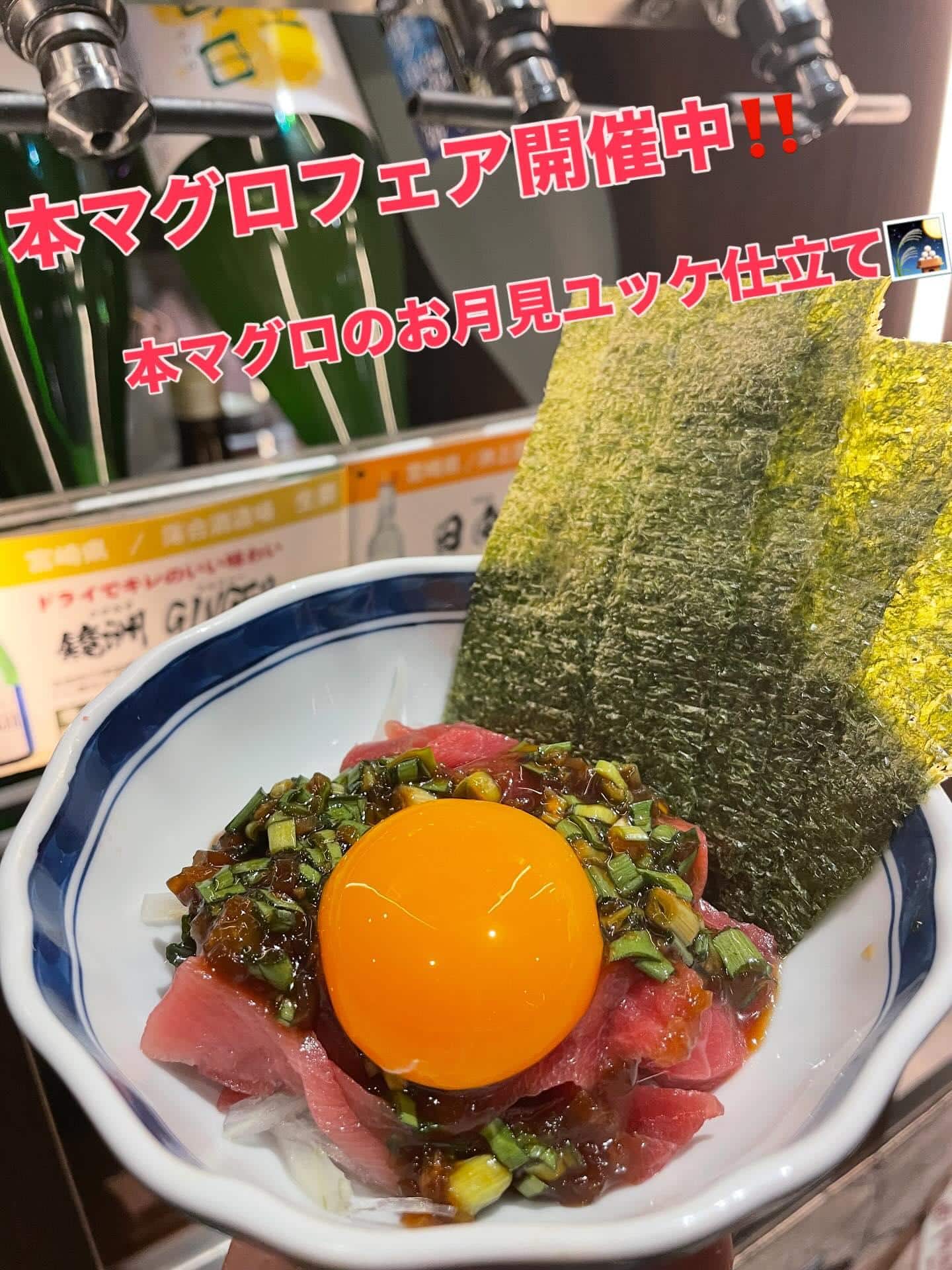 🫶本マグロのお月見ユッケ仕立て🫶 《居酒屋/九州料理/忘年会/新年会/歓迎会/送別会/個室/もつ鍋/餃子/馬刺/芋蔵/桜木町/馬車道/焼酎/飲み放題》