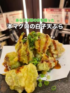本マグロの白子は鹿児島・和香園のあらびき茶を纏った衣で白子の旨みを引き出しており、本マグロハツはコリコリ食感が楽しい酢味噌がけにしてご用意しております🥰