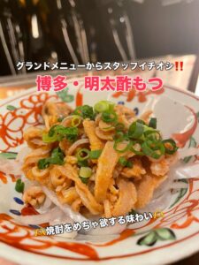 スタッフイチオシ!博多・明太酢もつ 《居酒屋/九州料理/忘年会/新年会/歓迎会/送別会/個室/もつ鍋/餃子/馬刺/芋蔵/桜木町/馬車道/焼酎/飲み放題》