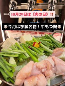 🐮🐮🐮10月の第6弾開催の肉の日はもつ鍋🐮🐮🐮