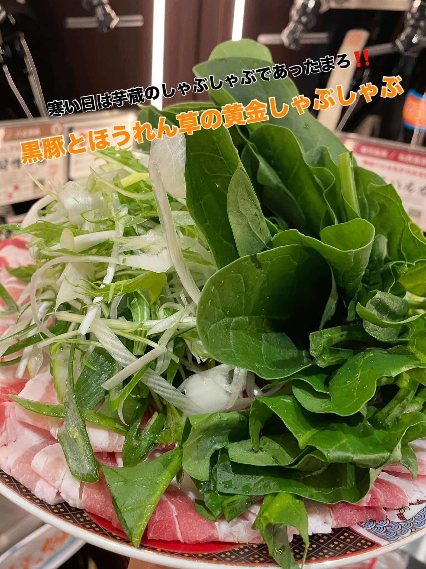 寒〜い夜は芋蔵名物の【黒豚とほうれん草の黄金出汁しゃぶしゃぶ】であったまろ‼️‼️
