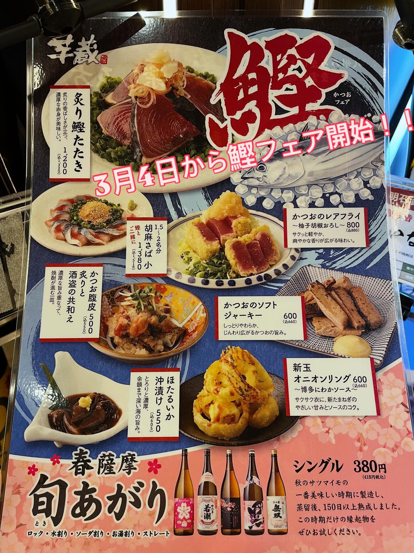 3月4日から鰹フェア開始‼️《居酒屋/九州料理/歓迎会/送別会/個室/もつ鍋/餃子/馬刺/芋蔵/桜木町/馬車道/焼酎/飲み放題》
