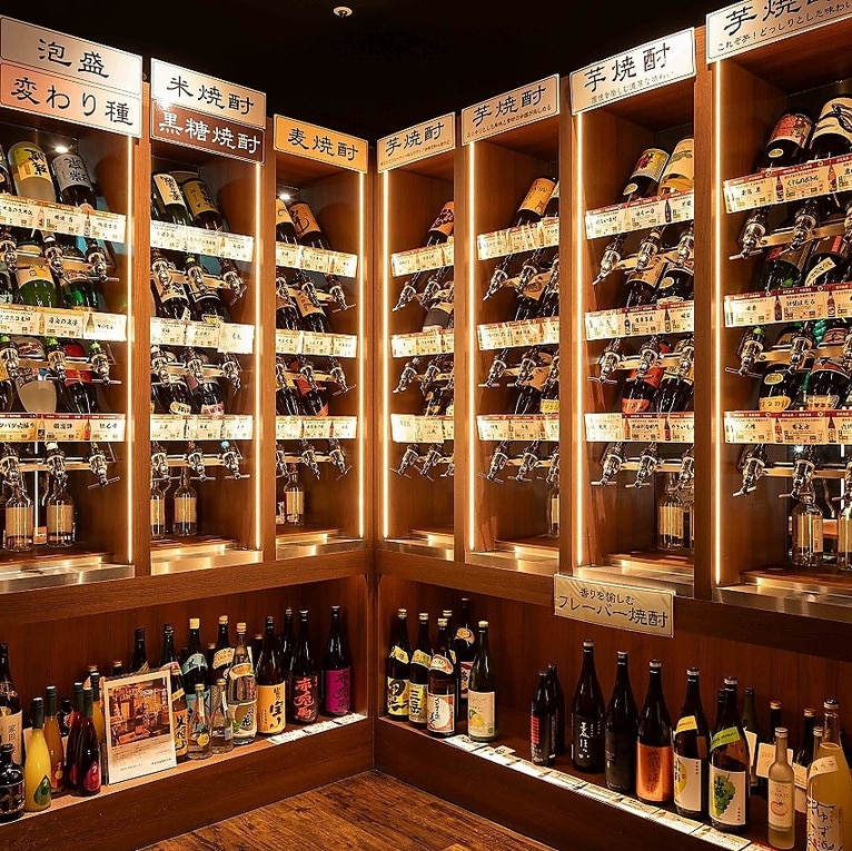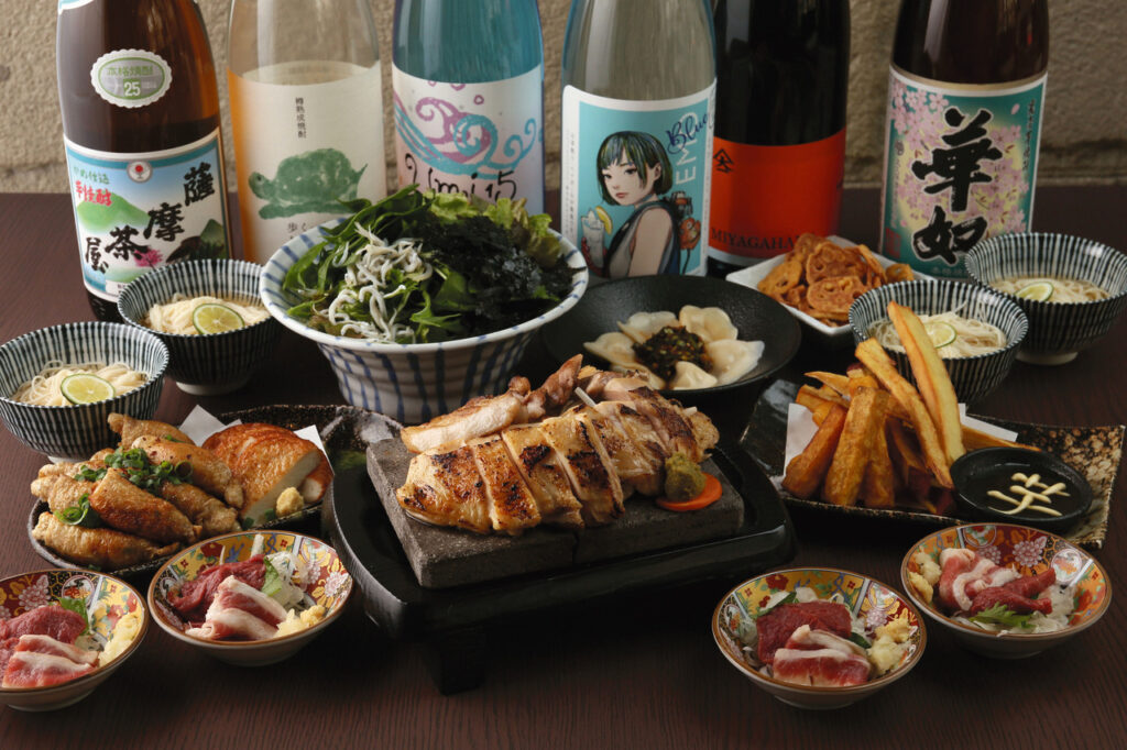 芋蔵といえば桜島溶岩焼きです。そのほか前菜から〆まで九州各地の美味いもんと80種類以上ある焼酎との相性も抜群!
