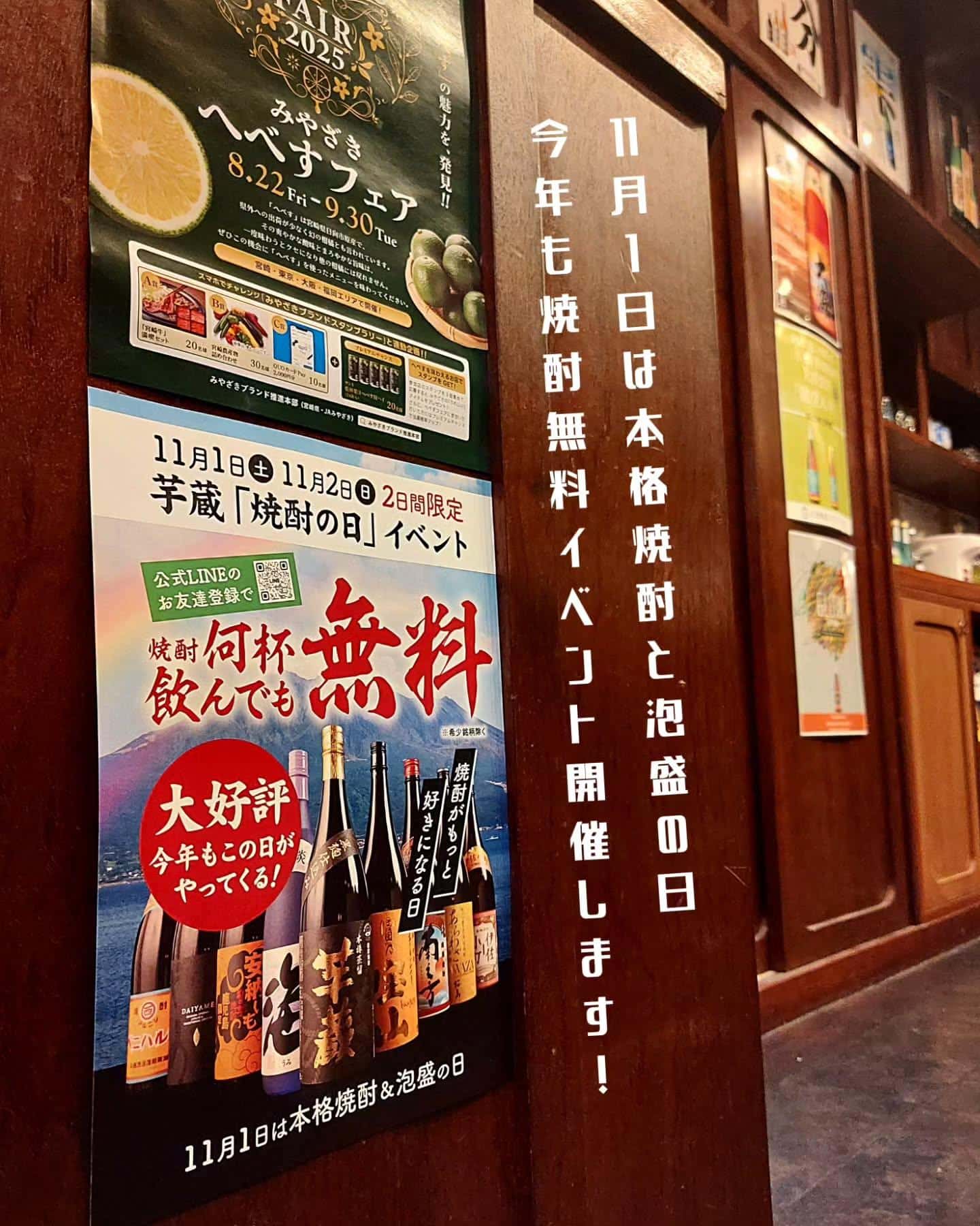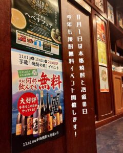 11月1日焼酎無料イベントのご予約はお早めに!《居酒屋/九州料理/忘年会/新年会/歓迎会/送別会/個室/もつ鍋/餃子/馬刺/芋蔵/新宿/焼酎/飲み放題》⁡⁡