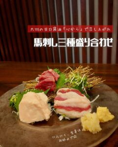 芋蔵名物の牛もつ鍋、黒豚しゃぶしゃぶ鍋、胡麻さば、馬刺、いかがでしょうか?