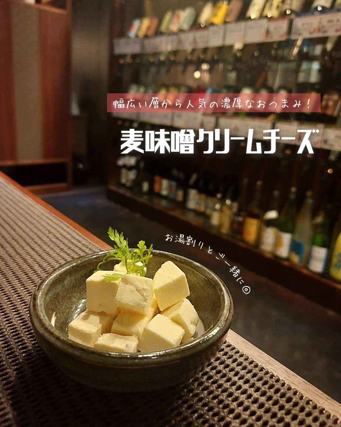 麦味噌にじっくり漬け込んだクリームチーズは濃厚な旨さ。