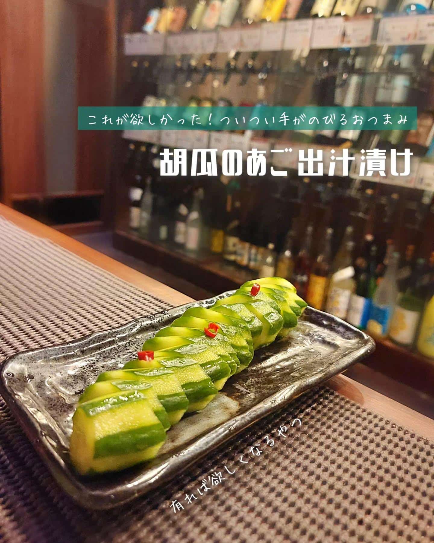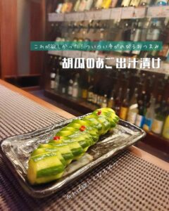 九州らしくあご出汁で漬けた胡瓜のお漬け物。