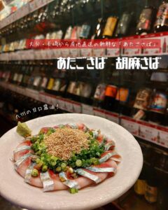 大分・長崎から産地直送の新鮮な生の「あたごさば」を使用した胡麻さばは必食!