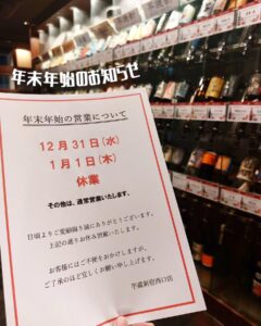 年明けは1月2日(金)から通常営業します!《居酒屋/九州料理/忘年会/新年会/歓迎会/送別会/個室/もつ鍋/餃子/馬刺/芋蔵/新宿/焼酎/飲み放題》