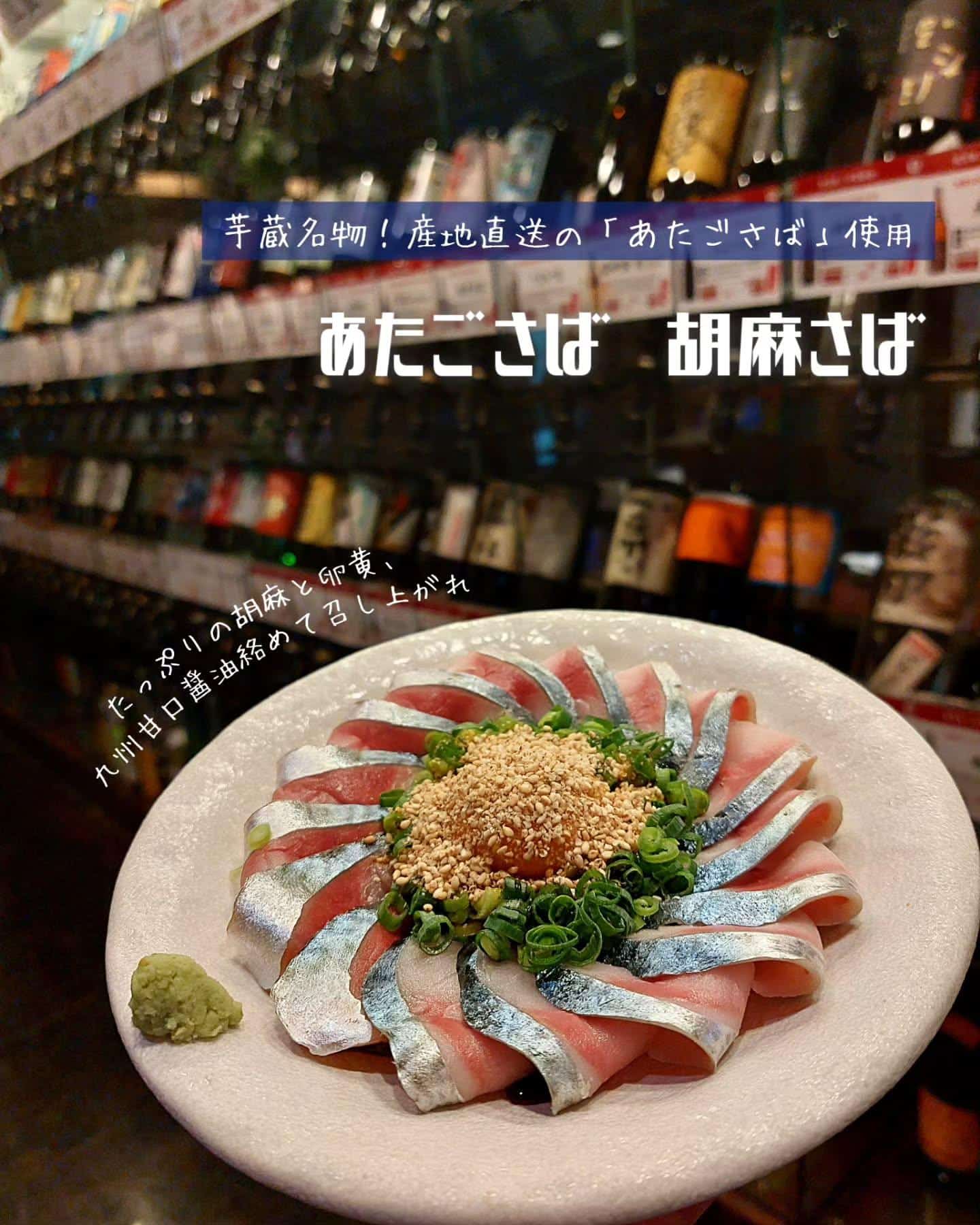芋蔵に来たらこれ。産地直送の新鮮なあたごさばの胡麻さば《居酒屋/九州料理/忘年会/新年会/歓迎会/送別会/個室/もつ鍋/餃子/馬刺/芋蔵/新宿/焼酎/飲み放題》