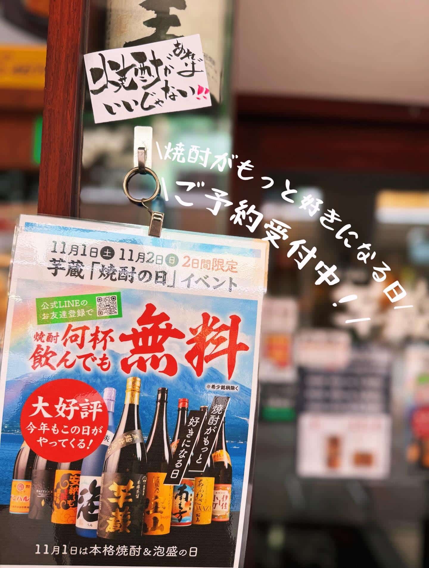 『焼酎の日、ご予約受付中!』《芋蔵/静岡/居酒屋/九州料理/焼酎/個室/利き焼酎/飲み放題/忘年会/送別会/20名以上宴会/もつ鍋》