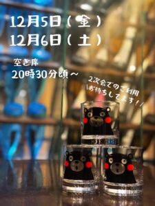 『12月5日・6日の空き席状況』《芋蔵/静岡/居酒屋/九州料理/焼酎/個室/利き焼酎/飲み放題/忘年会/送別会/20名以上宴会/もつ鍋》