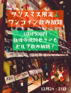 『クリスマス限定!ワンコイン飲み放題!』《芋蔵/静岡/居酒屋/九州料理/焼酎/個室/利き焼酎/飲み放題/忘年会/送別会/20名以上宴会/もつ鍋》