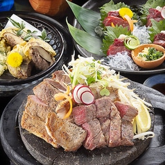 ジューシーな鹿児島黒豚と桜島鶏を炭火でじっくり焼き上げ、熱々の桜島溶岩プレートでご提供します!2時間たっぷり飲み放題と、馬刺しやさつま芋スティックなど芋蔵人気メニューもお楽しみいただける、大満足コース!