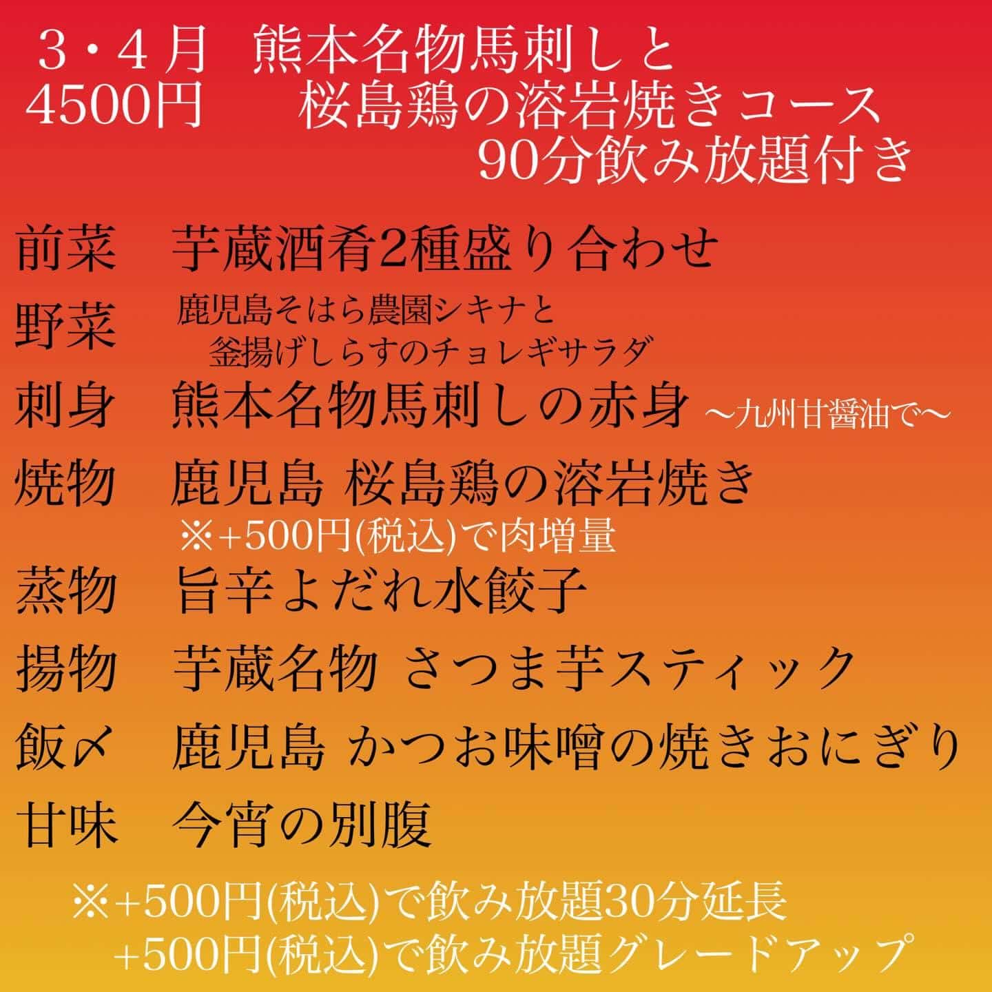 3.4月のコース【芋蔵豊橋/豊橋/個室/焼酎/居酒屋】